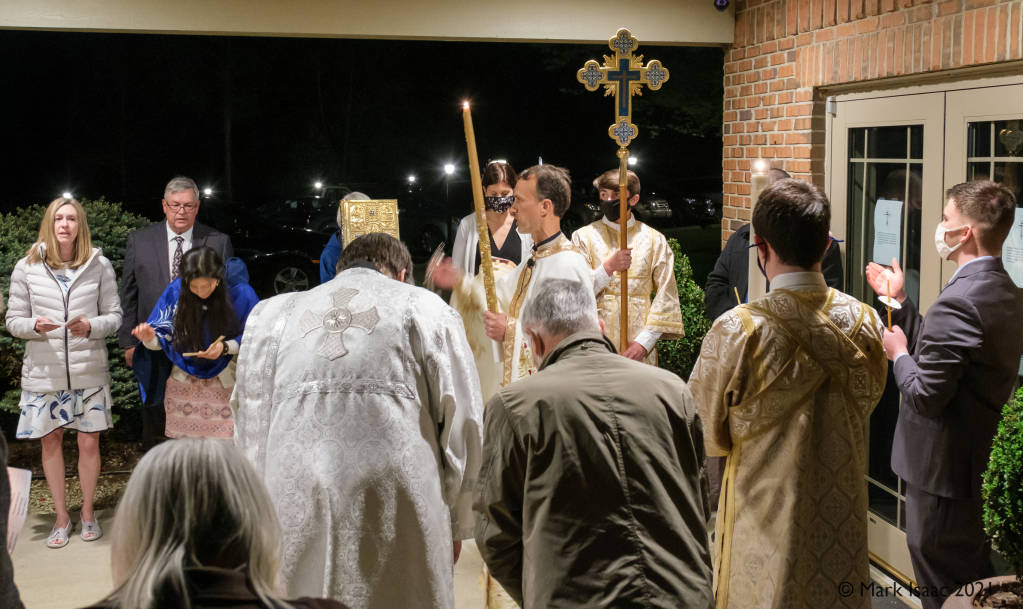 Fr Gregory reads the Paschal homily of St John Chrysostom